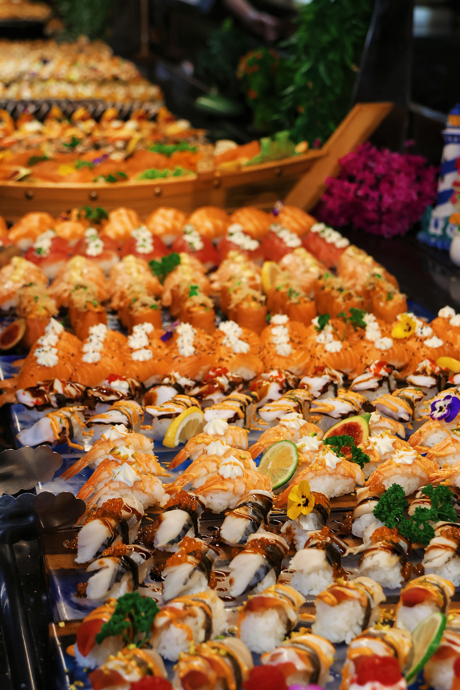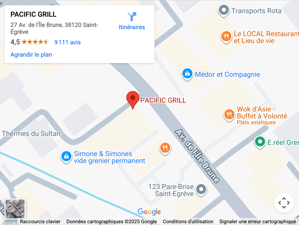 Restaurant PACIFIC GRILL, situé à Saint-Égrève près de Grenoble, est un restaurant buffet à volonté asiatique de 1 600 m² proposant plus de 600 plats. Vous y trouverez des sushis, des grillades, des pizzas italiennes et des fruits de mer. Son décor raffiné inspiré de l’océan crée une ambiance élégante et chaleureuse, idéale pour des repas en famille, entre amis ou en couple. Avec son excellent rapport qualité-prix, Pacific est une destination incontournable pour tous les amateurs de cuisine variée et savoureuse.